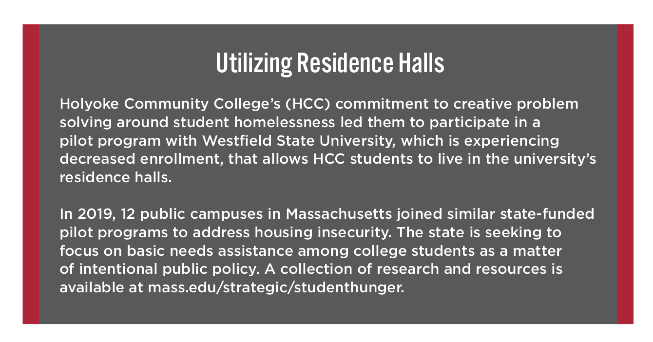 “Part of the idea was to ask this question, ‘How can everyone on campus contribute to making an institution a place where students can succeed and not be prevented by facing housing insecurity?’” Seligsohn says. “The building of a coalition has been useful. It destigmatizes this issue for colleges and universities.”