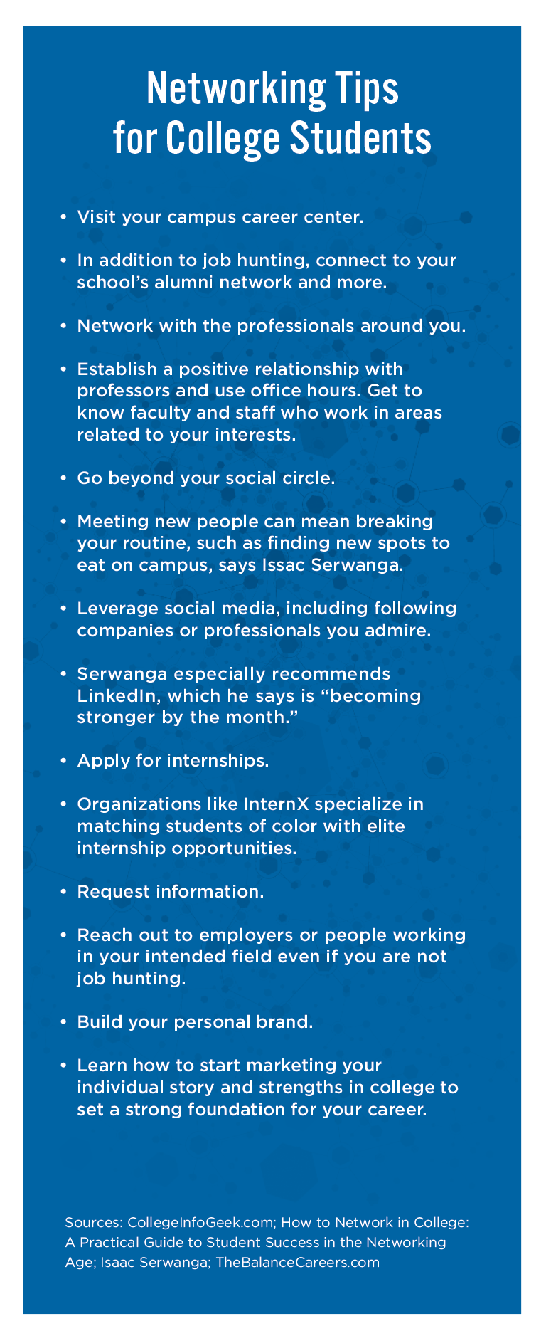 Students should be prepared to get turned down when reaching out to professionals, however, as “no” is the most common word they may hear, Serwanga says. That’s just part of the networking game, especially when it comes to cold calls and emails, he adds.