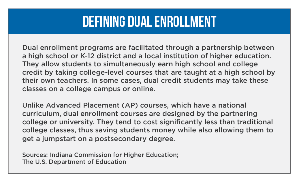 Dual enrollment programs, also known as dual credit or concurrent enrollment programs, have in recent years become a mainstream pathway to higher education for high school students. Their appeal includes the opportunity to reduce the time and cost of obtaining a college degree while simultaneously preparing high school students for challenging college-level coursework.