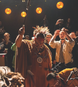 For the 2021-2022 academic year, the Boston University Arts Initiative is sponsoring an interdisciplinary program focused on amplifying the voices of Indigenous creators from North and South America through music, art installations, conferences, and more. In September, the program featured the Eastern Medicine Singers, an Algonquin drum group that promotes and celebrates the eastern woodlands American Indian culture.