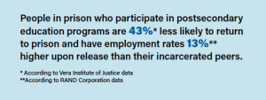 Data supports the positive impact of PEPs, revealing a 43% lower likelihood of recidivism and a 13% higher employment rate for participants, according to the Vera Institute and the RAND Corporation — a nonprofit policy think tank that conducts research on numerous public sectors, including education. Beyond individual benefits, however, high-quality PEPs contribute to safer correctional facilities, increased public safety, and taxpayer savings, writes Taber.