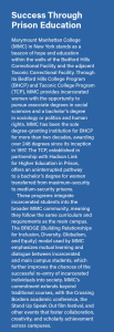“People who participate in postsecondary education in prison describe the experience as transformative, pushing them to develop new identities, perspectives, and goals, to focus on self-reflection and improvement,” writes Niloufer Taber, an associate director for research at the Vera Institute of Justice — a national nonprofit that researches the criminal justice system and advocates against injustice within the system. “These courses also provide incarcerated students and formerly incarcerated alumni with knowledge, skills, and connections they can use to benefit their children and families, multiplying the impact of a single college degree.”
