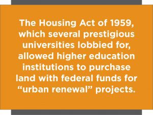 Schlichtman says universities have been complicit throughout the 20th century with regard to race and class segregation by moving into a community without doing their due diligence first.