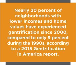 A 2018 report by real estate listing service RENTCafé shows that when private universities expand into urban areas, gentrification often results, and longtime, low-income residents are often displaced.