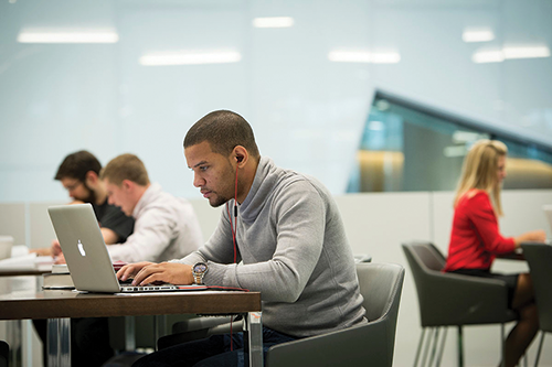[Above: A Syracuse University College of Law student at Dineen Hall (Photo courtesy Syracuse University College of Law)]