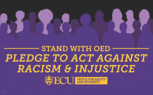 The Office for Equity and Diversity at East Carolina University (ECU) launched a social justice campaign to help individuals stand against racism. The campaign aims to educate the ECU community and to commit to standing against racial injustice. More than 1,000 campus community members have signed a pledge to educate themselves on these issues, including systemic and interpersonal racism, discrimination, and privilege. The initiative also created a grant program that includes six mini grants that were awarded to academic departments and employees who proposed projects dedicated to ending racism at ECU and in the region.
