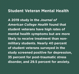 Across the U.S., colleges and universities have identified military service-related mental health issues as a crucial area of study, education, and advocacy. Through cutting-edge research, treatment programs, and outreach initiatives, higher education institutions are working to find solutions to improve the health and well-being of veterans and their families.